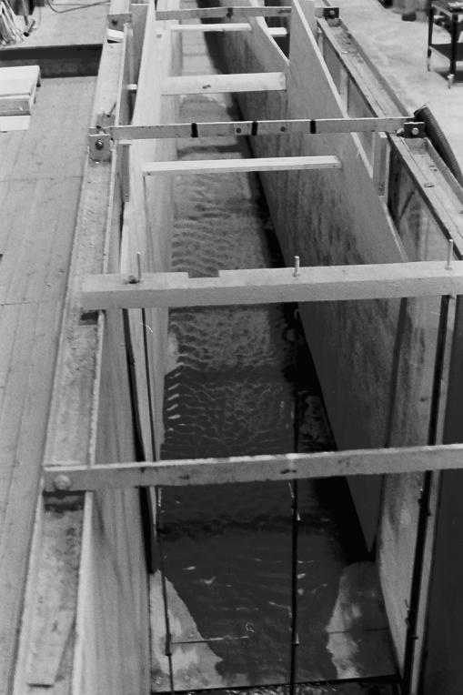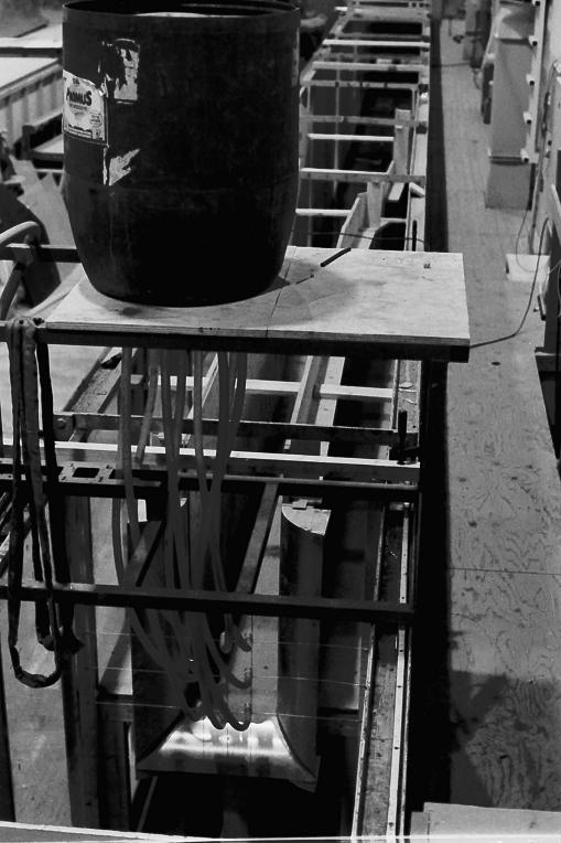 Looking at the inflow section with the sediment feed. Looking in the downstream direction.