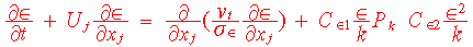 The dissipation of k is called epsilon, and the equation solving for this parameter is:
